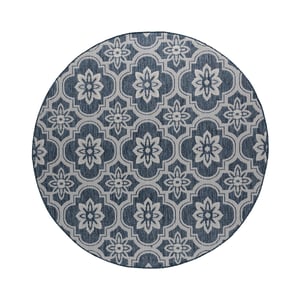 Tapis d’extérieur rond – Rio Flower Bleu Disponible en différentes tailles :: Ø 100cm, Ø 120 cm, Ø 140 cm, Ø 160 cm, Ø 200 cm en Ø 230 cm.